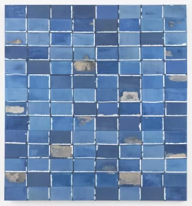 لوحة “السماء الزرقاء مهمة” (2016) لصموئيل ليفي جونز المصنوعة من كتب قوانين أوهايو على القماش. بإذن من الفنان ومعرض ليلونج وشركاه، نيويورك.